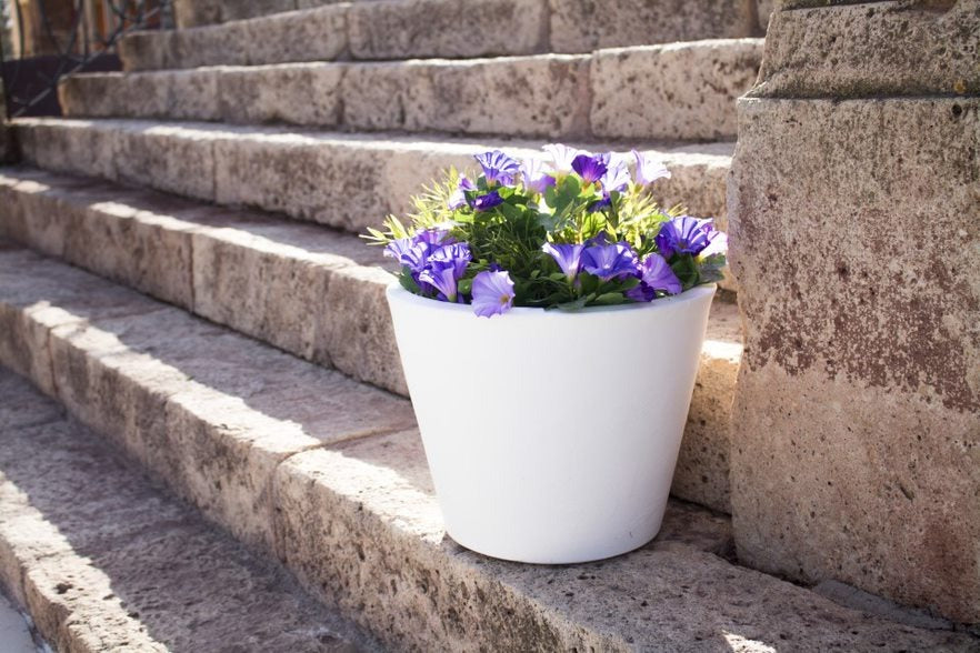 Disponible en Blanco, Gris, Negro, Bronce y Arena. Si puedes elegir el color en las opciones la maceta está disponible para envío.