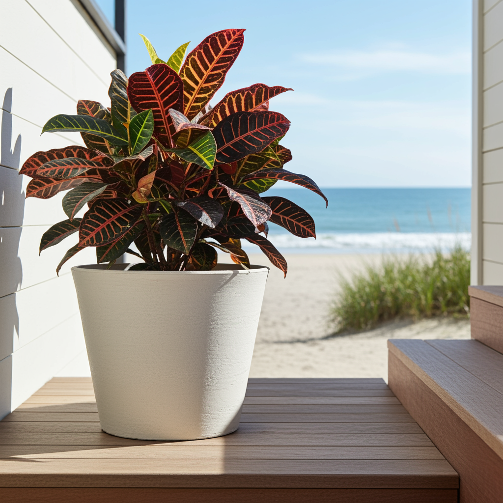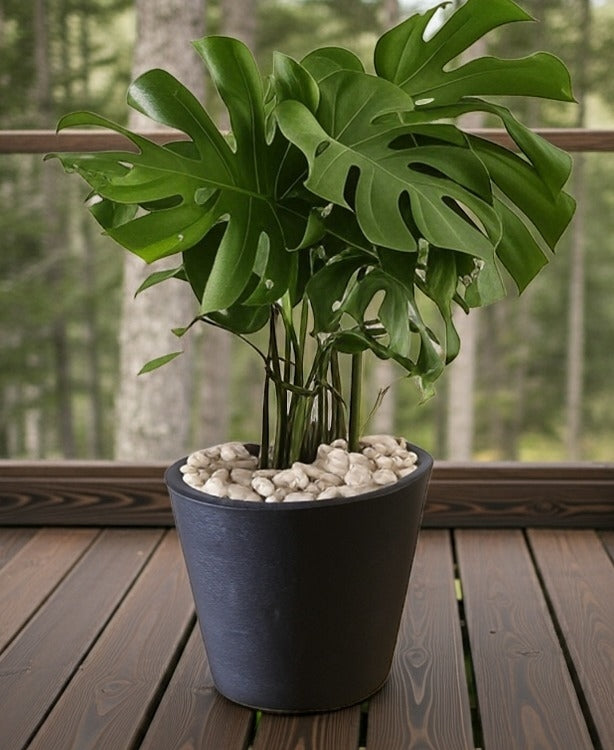 Fabricada en poliétileno, producto ligero, resistente a rayos UV, reciclable e irrompible. Es un material mas grueso y tratado específicamente para exteriores que no se agrieta como los plásticos comunes.